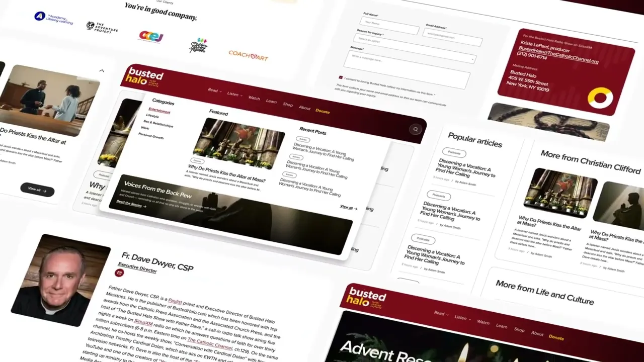 The redesigned site is sleek, intuitive, and fast — both for the editorial team updating it and for readers navigating it. Content is easy to discover, newsletter sign-ups are more prominent, and the design strikes a balance that feels authentic to Busted Halo's voice: grounded in faith, but never stuffy.