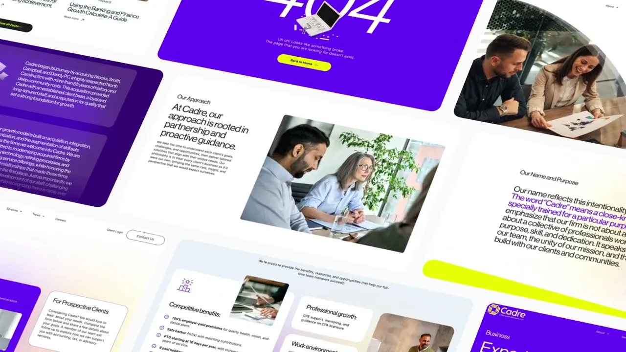 The accounting industry has a reputation for playing it safe — and most firms' websites reflect that. After acquiring another firm and consolidating under the Cadre name, the team saw an opportunity to do more than just merge. They wanted to modernize from the ground up, starting with a brand and web presence that would set them apart in a space that tends to resist change.